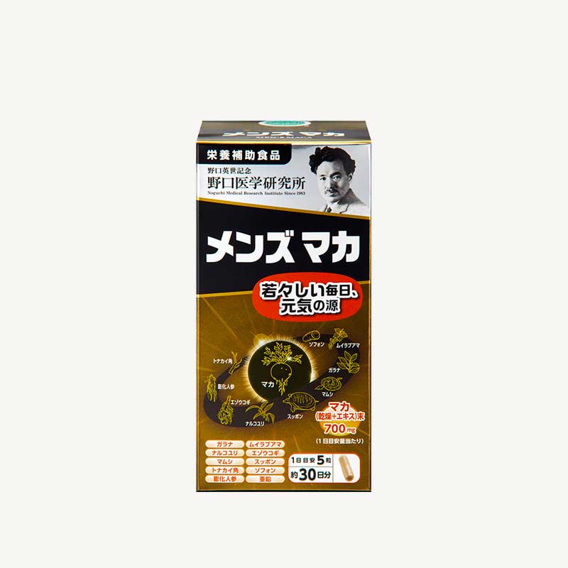 Noguchi Men's Maca is a dietary supplement featuring maca, a powerful root vegetable grown in the high altitudes of Peru, known for its energy-boosting properties. This supplement is formulated with 11 additional ingredients traditionally believed to promote strength and vitality, including ezo deer antler and satsuma. Together, these ingredients work synergistically to support men's health, energy, and overall well-being.